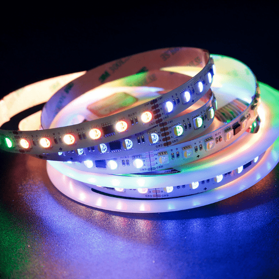 These LED strips feature individual RGB (Red, Green, Blue) LEDs that can be controlled independently. They allow you to create a wide range of colors by adjusting the intensity of each color channel.