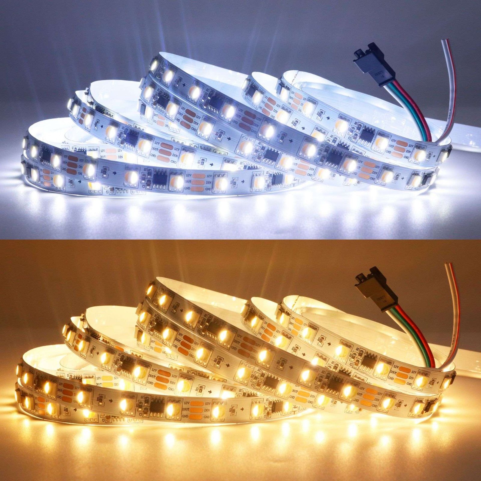 If you are considering the lighting effects and patterns, the addressable led strips can be categorized into five types: Mono color; Dual color; RGB; RGBW; RGB + Dual color.