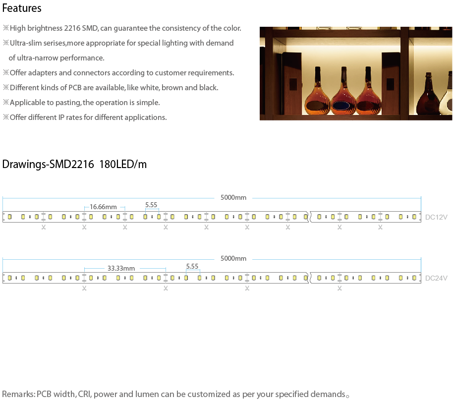 216 180LED/M 5mmPCB Ultra-Slim LED Strip